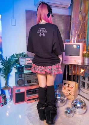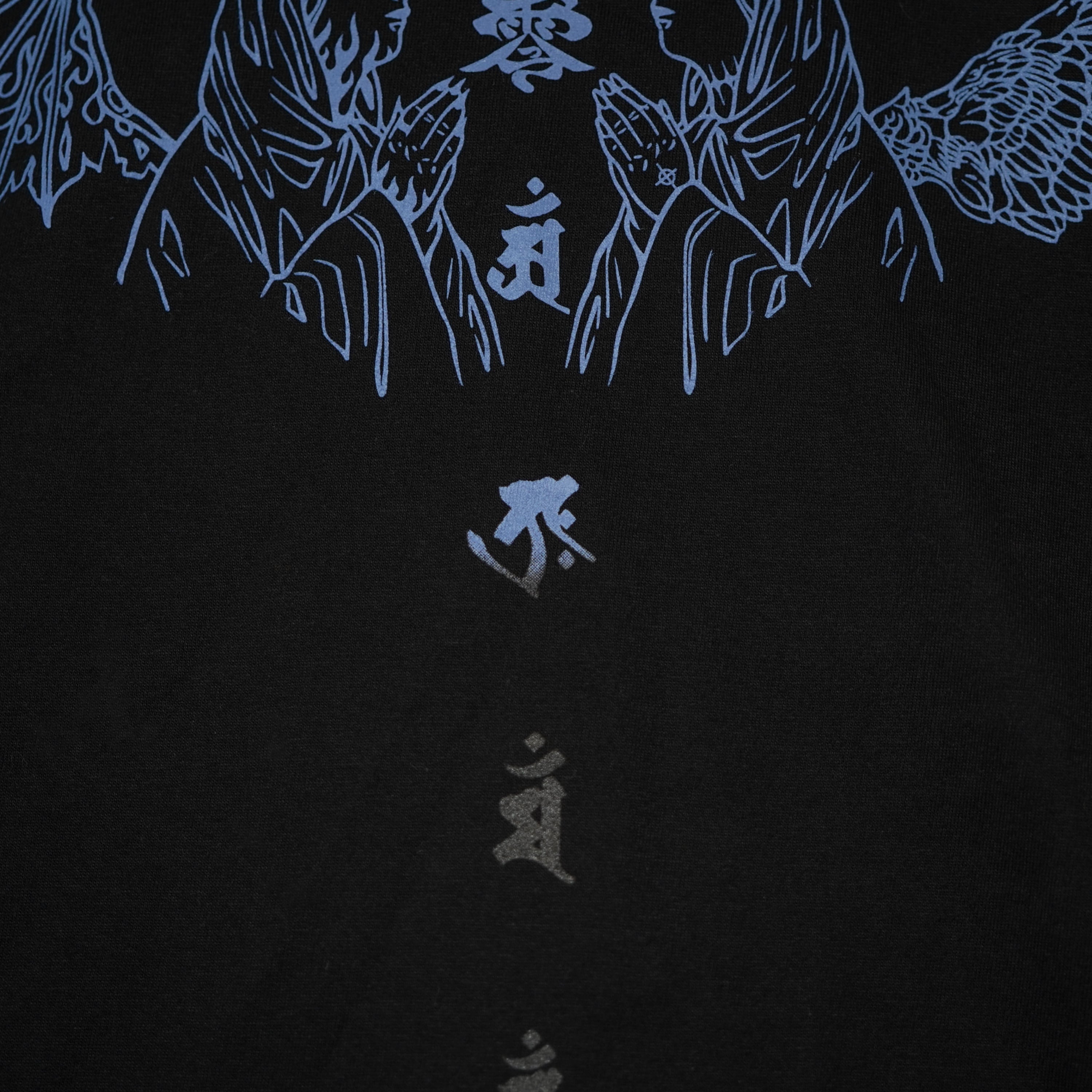 フロントには縦長のグラデーションプリントで梵字が見え隠れするデザイン。